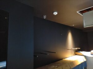 今回の現場では、スポットライトの光が当たる部分は、見栄えが良くなるように入念に下地処理をおこないました。