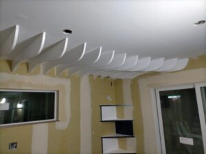 今回の工事ではご住居天井にあるオブジェをかわしながらクロスを貼る必要がありました。