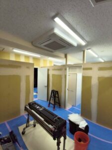 物件は既にスケルトン状態で、間仕切りや動線計画に合わせて、一から空間をつくり上げる施工となりました。